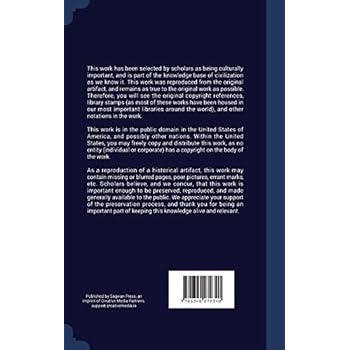 This work has been selected by scholars as being culturally important, and is part of the knowledge base of civilization as we know it. This work was reproduced from the original artifact, and remains as true to the original work as possible. Therefore, you will see the original copyright references, library stamps (as most of these works have been housed in our most important libraries around the world), and other notations in the work.This work is in the public domain in the United States of America, and possibly other nations. Within the United States, you may freely copy and distribute this work, as no entity (individual or corporate) has a copyright on the body of the work.As a reproduction of a historical artifact, this work may contain missing or blurred pages, poor pictures, errant marks, etc. Scholars believe, and we concur, that this work is important enough to be preserved, reproduced, and made generally available to the public. We appreciate your support of the preservation process, and thank you for being an important part of keeping this knowledge alive and relevant.