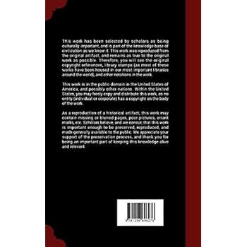 This work has been selected by scholars as being culturally important, and is part of the knowledge base of civilization as we know it. This work was reproduced from the original artifact, and remains as true to the original work as possible. Therefore, you will see the original copyright references, library stamps (as most of these works have been housed in our most important libraries around the world), and other notations in the work. This work is in the public domain in the United States of America, and possibly other nations. Within the United States, you may freely copy and distribute this work, as no entity (individual or corporate) has a copyright on the body of the work.As a reproduction of a historical artifact, this work may contain missing or blurred pages, poor pictures, errant marks, etc. Scholars believe, and we concur, that this work is important enough to be preserved, reproduced, and made generally available to the public. We appreciate your support of the preservation process, and thank you for being an important part of keeping this knowledge alive and relevant.