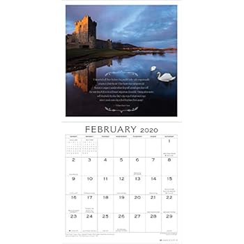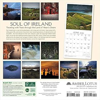 The Emerald Isle is a soul-stirring destination with a long and rich history. Wave-lashed cliffs, rolling green hills, and ancient monuments have inspired generations of talented artists and storytellers. The most beloved of these Irish creatives was poet and playwright William Butler Yeats, one of the most significant literary figures of the 20th century, whose work was deeply influenced by the land and heritage of Ireland. Follow in his footsteps and be inspired by his poetry as you discover enchanted locations across this magical land. 12" x 12" wall calendar (12" x 24" open). We Plant Trees — Amber Lotus Publishing, an independent carbon-negative US company, has planted more than three quarters of a million trees since 2008. High-quality printing on premium paper stock. Printed on paper sourced from a combination of sustainably managed forests and recycled materials. Features US and Canadian legal holidays, phases of the moon, and important observances of the world's major religions.